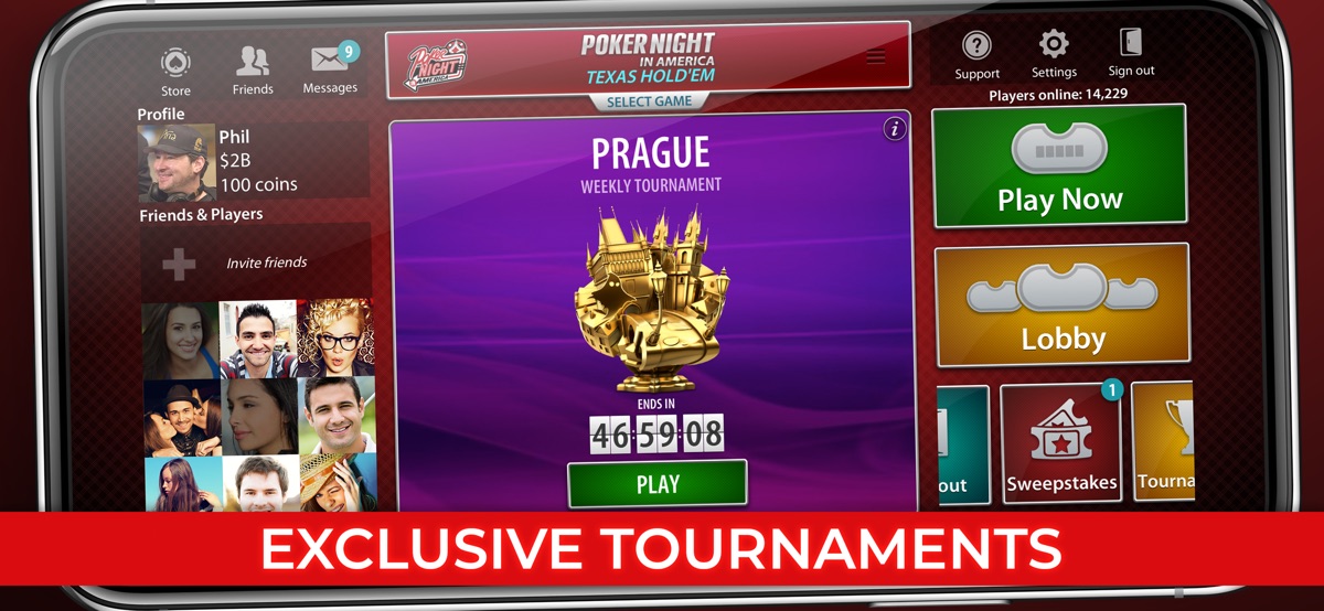 ● TOURNAMENTS – Master your poker skills! Participate in WEEKLY Sit’n’Go tournaments where you can WIN unique Trophies and top our Leaderboard.