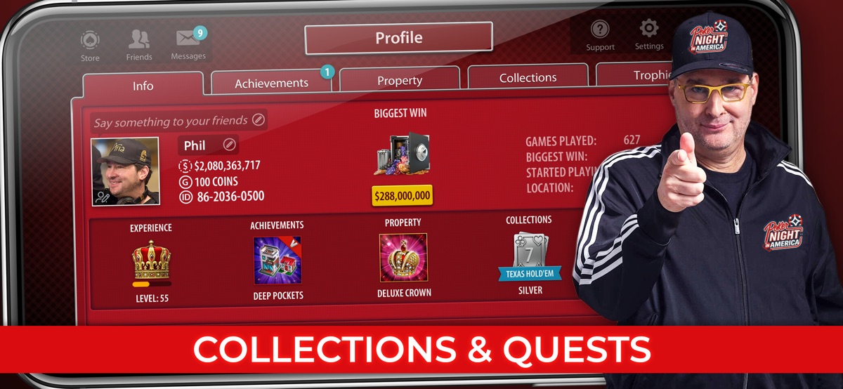 ● YOUR OWN PROFILE PAGE – Track your progress and status in the game! Get experience and level up. See how many poker tournaments you’ve won and achievements you’ve completed. Get unique properties and display them on your profile. View other players’ profiles to see how you compare!