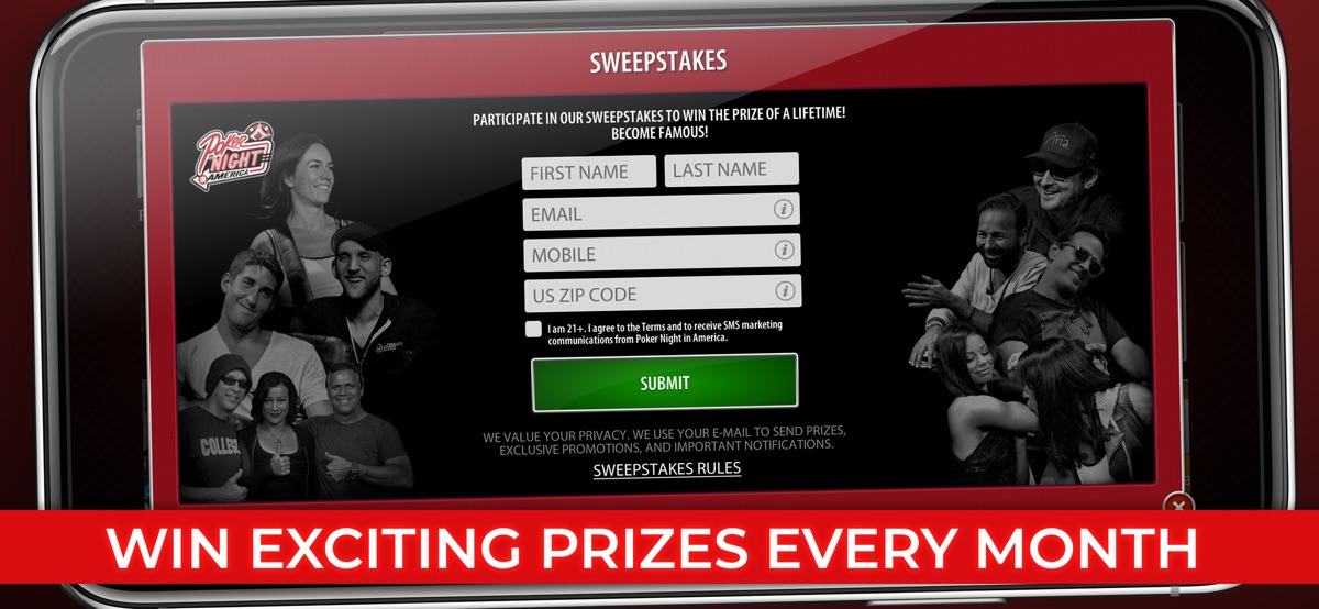 PLAY NOW and win a chance to play poker on NATIONAL TV! This is the official social poker app published by the hit TV series Poker Night In America! Play FREE Texas Hold’em Poker against millions of other players, invite your friends, and have your very own Poker Night. Our weekly sweepstakes lets you win REAL WORLD PRIZES, including a chance to live your poker dream and PLAY AGAINST POKER CELEBRITIES on national television!
