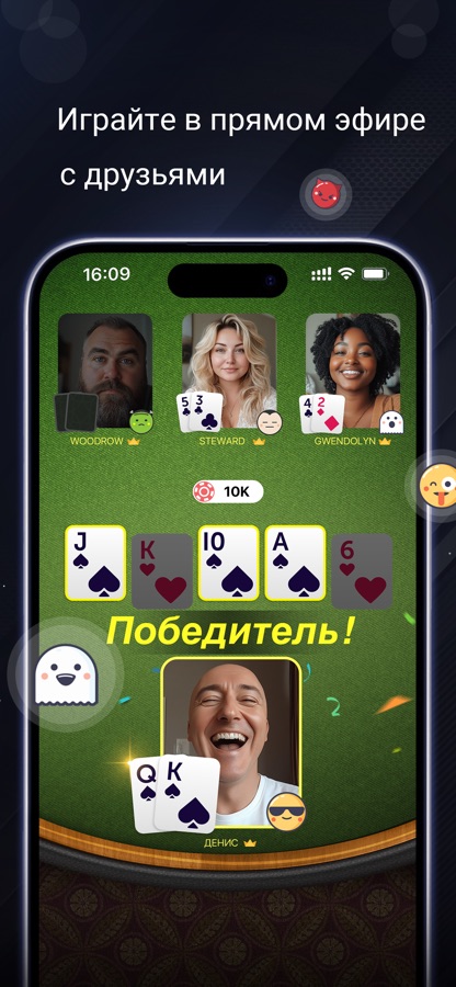 Хотите играть в покер с друзьями? PokerUp — это единственное покерное приложение, где вы можете легко и быстро организовать игру с друзьями из контакт листа. Общайтесь и наполняйте игру эмоциями c помощью уникальной функции мгновенных видеосообщений.