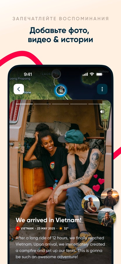 ■ Добавляйте фотографии, видео, заметки по пути, делая свои воспоминания намного более яркими.