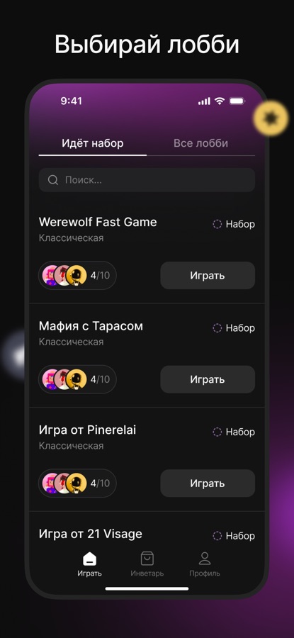 Командно-психологическая игра, где представители мирного города должны разоблачить мафию и исключить путем голосования.