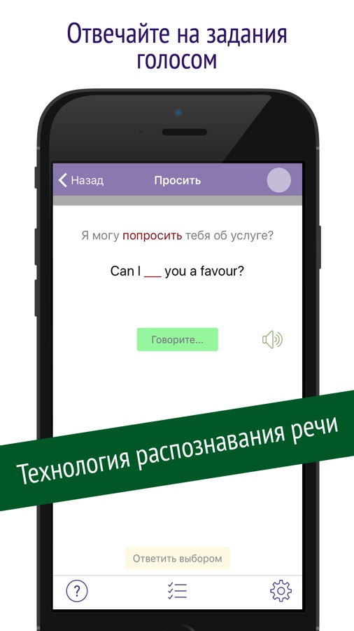 — Уникальный вариант тренировки через распознавание речи, проговаривайте ответ и приложение вас поймет;
