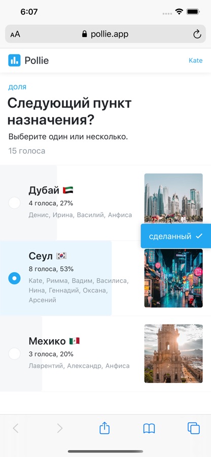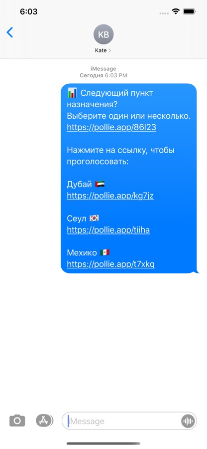 Пользователи могут проголосовать, перейдя по ссылке Pollie и выбрав ответ. Или напрямую, нажав на ссылку, связанную с ответом.