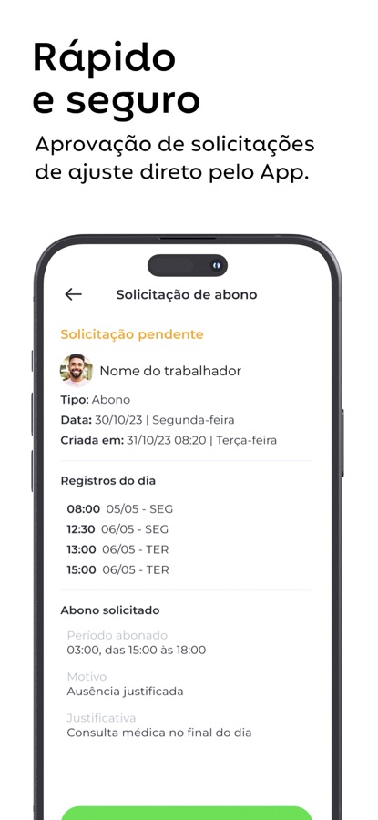 > O colaborador pode fazer correções, solicitar abonos e até enviar imagens de declarações e atestados via app. O gestor vai receber essas informações e aprová-las ou não, também pelo celular.