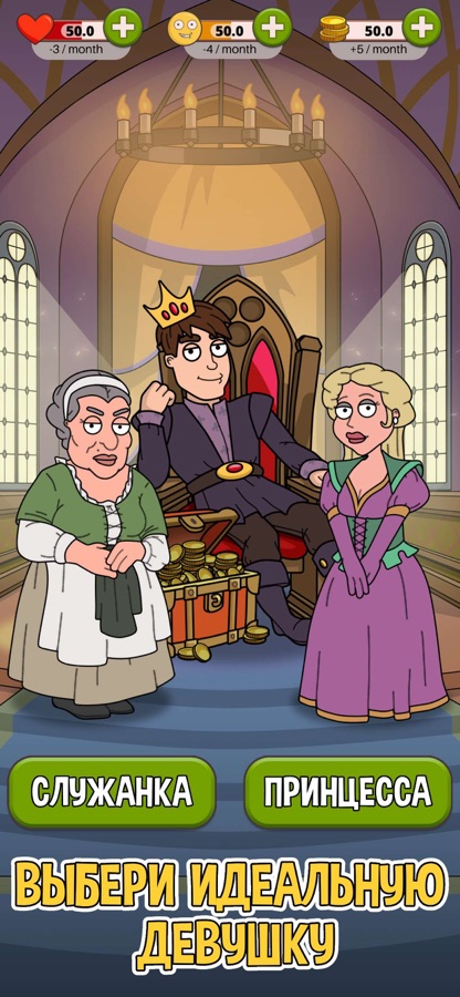 Станьте самым богатым человеком в королевстве. Следите за показателями здоровья, денег, счастья и живите 100 лет. Приведите деревенского человека к успешной жизни магната.