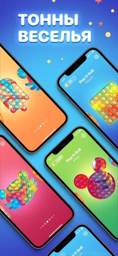 Pop it — ваш лучший антистресс. Откройте приложение и начните играть, чтобы хорошенько расслабиться, насладиться эстетикой ярких попитов или же просто развлечься!