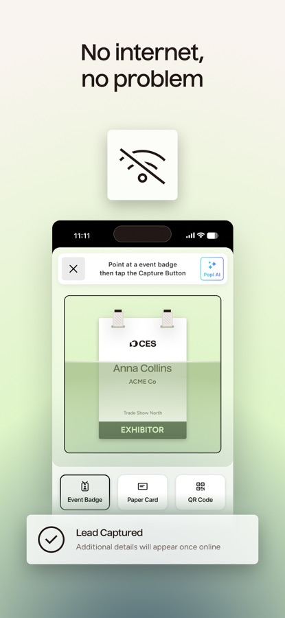 — Let’s face it, conference Wi-Fi can be a nightmare. We built Popl from the ground up with offline capabilities in mind so that all leads are saved, enriched, and synced no matter the conditions.