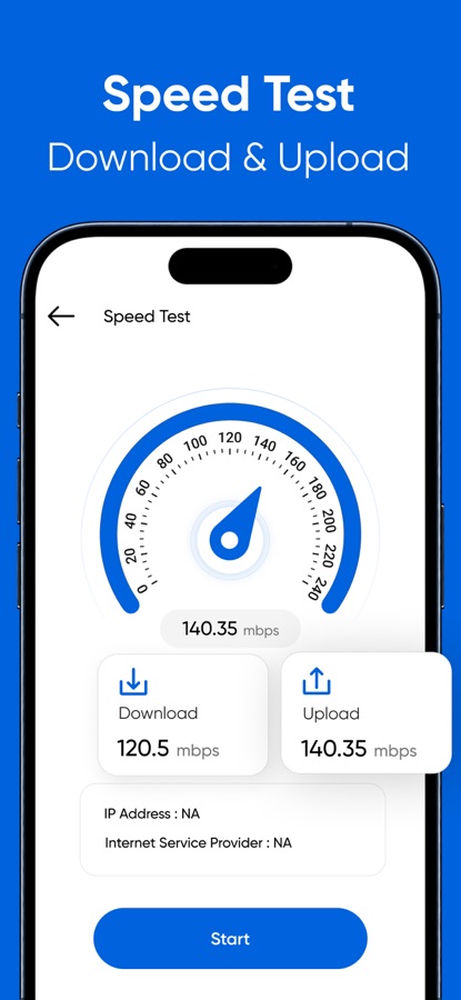 Test network speed, including download and upload speeds