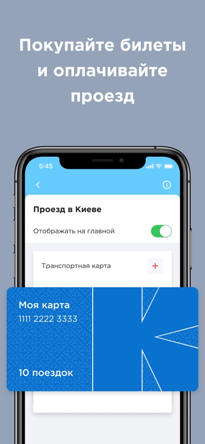 Быстрый доступ к Kyiv Smart Card и «Киев Цифровой» на главной странице. Билеты на автобус и проезд в метро теперь без очереди.