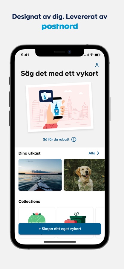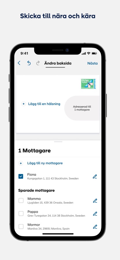 • PostNord skriver ut och skickar ditt vykort till de mottagare som du angivit
