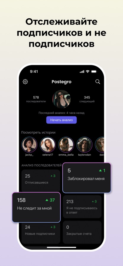 Узнайте, кто больше не подписан на вас с помощью Postegro. Кто перестал подписываться на вас в Instagram? Отслеживайте своих отписавшихся.