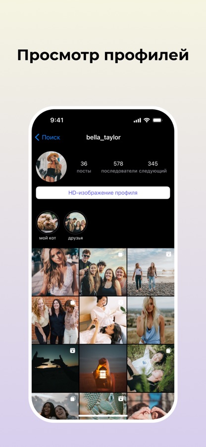 Легко ищите всех пользователей Instagram. Анализируйте профили пользователей и просматривайте их публикации, моменты, истории и ролики.