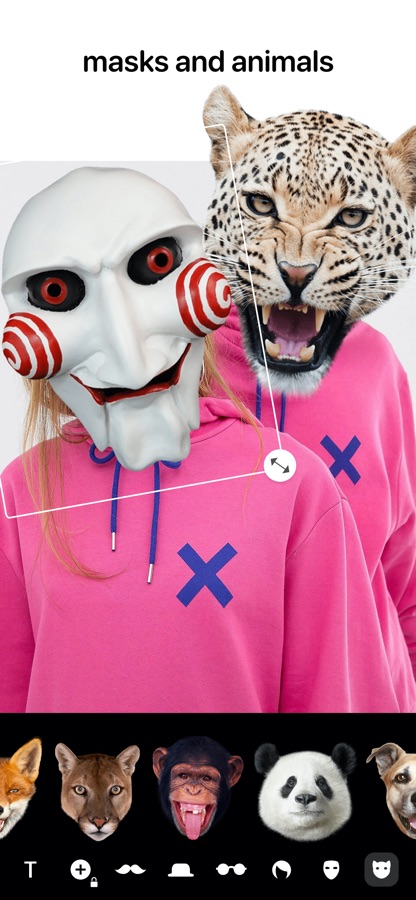 Добавляйте стикеры на фото: маски, бороды и усы, прически, шапки и очки, мордочки животных и многое-многое другое! Добавляйте стоп моушен анимацию и надписи на фото! Редактируйте слои и используйте различные эффекты. Сохраняйте макеты над которыми работаете. Мы постоянно добавляем новые стикеры в коллекцию!