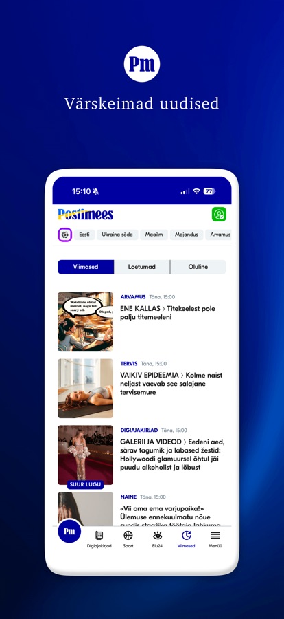 Postimehe äpp toob sinuni värskeimad uudised Eestist ja maailmast kohe, kui need juhtuvad. Jälgi poliitikat, majandust, sporti, kultuuri ja meelelahutust ühes kohas.