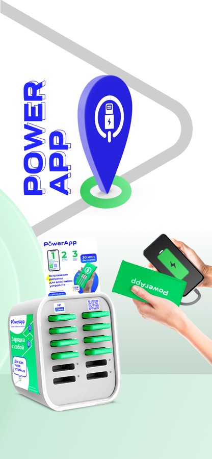 PowerApp — сервис моментальной аренды зарядных устройств. Powerpank за 1 минуту — просто скачайте приложение и найдите ближайшую шеринг–станцию. Каждый Powerbank оснащен всеми типами современных разъемов.