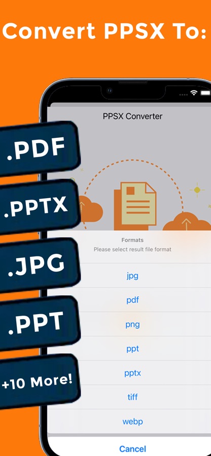 PPSX File converter to PDF, PPTX, PPT, JPG, PDF, PNG, TIFF, WEBP.