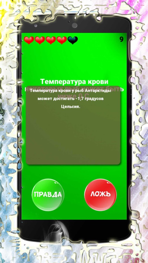 Правила игры Правда или Ложь очень просты. У тебя в запасе будет 5 жизней, которые помогут тебе, если ты ответишь неправильно. Каждые 10 правильно отвеченных вопросов возвращают тебе потеряную жизнь.