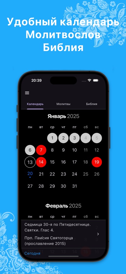 Православный календарь с подробной информацией по святым и праздникам, Библия, молитвослов. Все, что может понадобиться православному христианину.