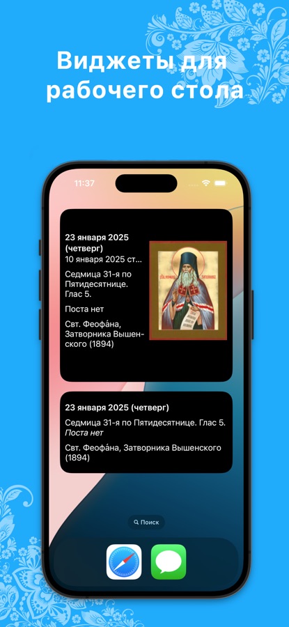 ∙ На экран виджетов можно добавить виджет с краткой информацией из православного календаря.