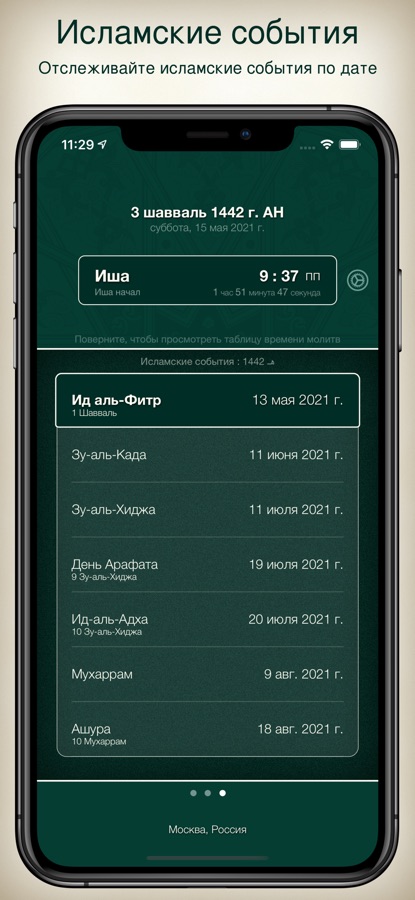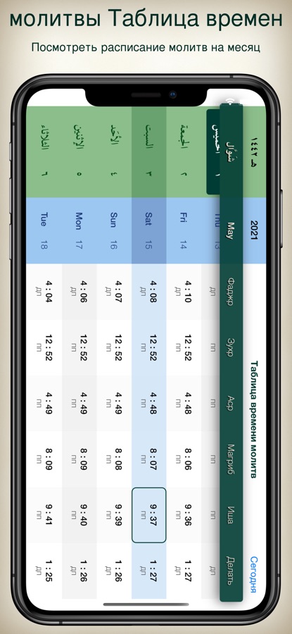 Благодаря удобному просмотру «Сегодня», ежемесячной ежемесячной молитве в альбомной ориентации и приложению Apple Watch вы всегда будете в курсе текущего времени молитвы.