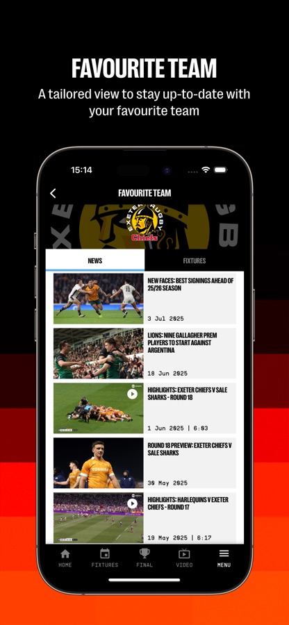 Select your favourite club and get personalised updates about – fixtures, scores, transfers and more, all tailored to you.