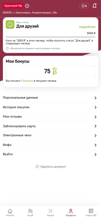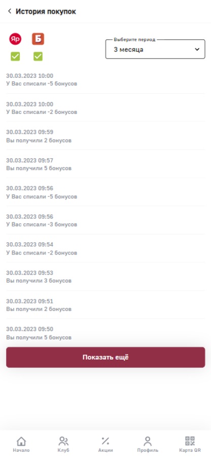 * Следи за своим уровнем в программе и изменениями бонусного счета.