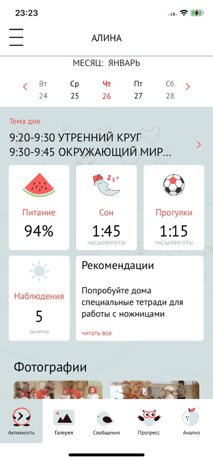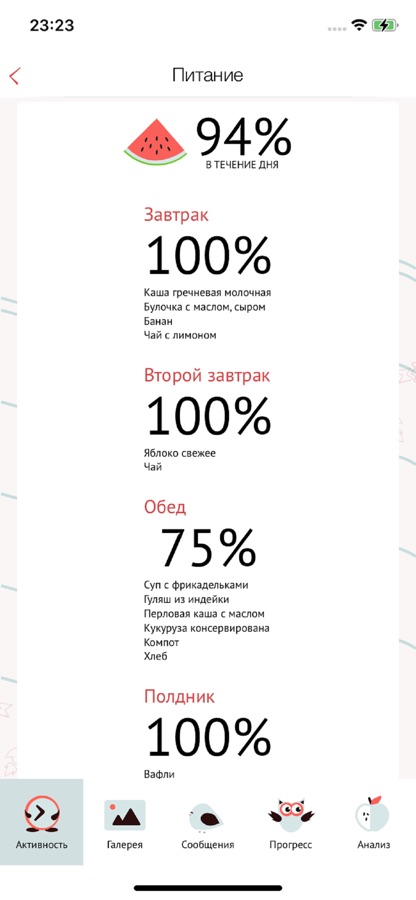 • меню дня и аппетит ребенка;