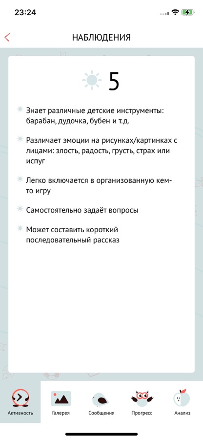 • журнал наблюдений: настроение, коммуникация, эмоции.