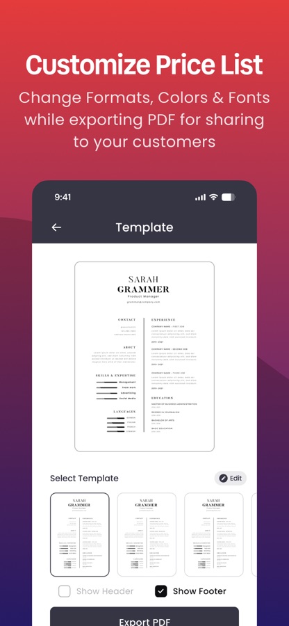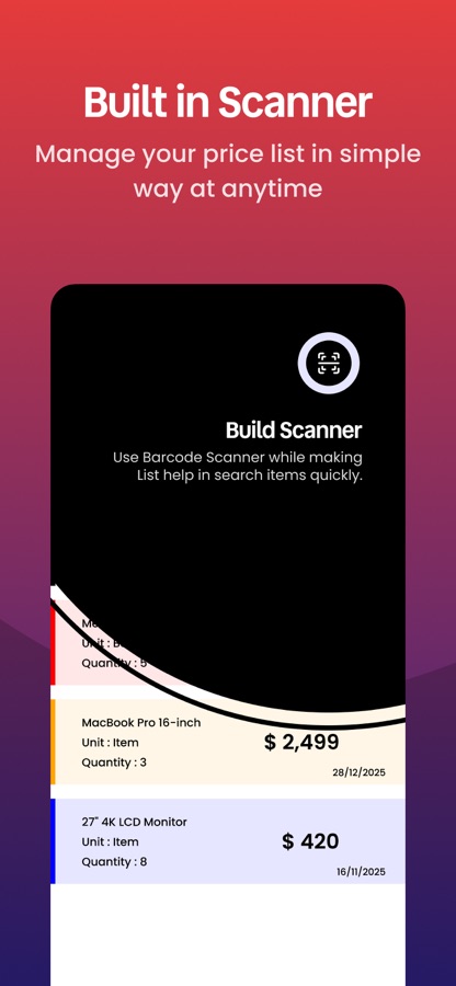 Кроме того, прайс-лист дает вам представление о себестоимости и продажной цене вашей продукции. Вы можете быстро просмотреть цены на свои продукты одним нажатием и легко поддерживать. Вы можете хранить неограниченное количество продуктов и предметов наиболее эффективным способом и увеличивать продажи и продвигать свой бизнес.