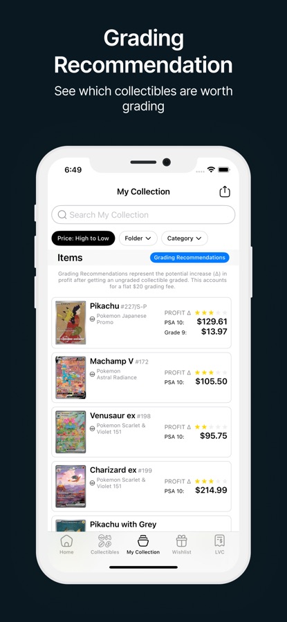 — Get grading recommendations for your ungraded collectibles that would gain the most value