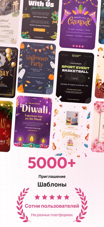 С помощью этого создателя пригласительных билетов вы можете создавать приглашения для: