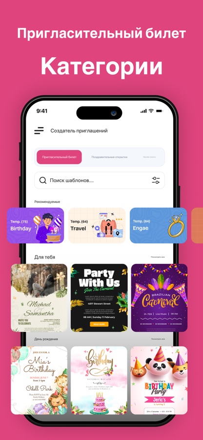 1. Загрузите приложение Invitation Maker и изучите огромную коллекцию шаблонов приглашений.