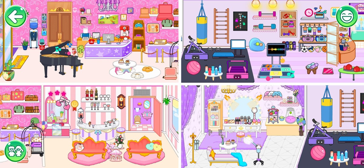 — Выберите комнату в доме мечты и персонажа для игры, например, город Тока Бока, больничную палату или роскошную столовую.