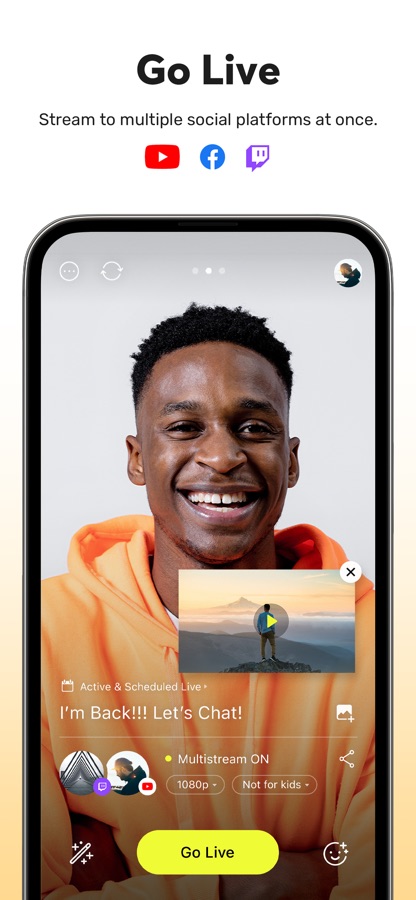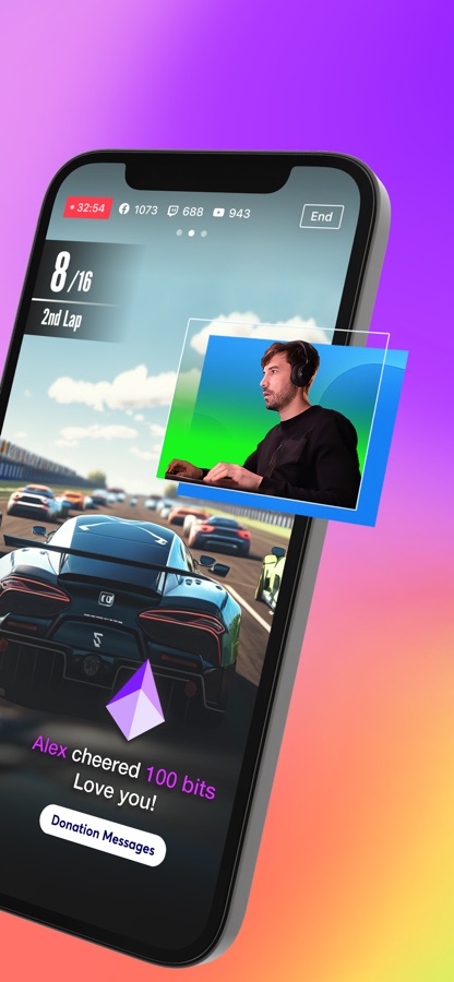 Unleash your creativity with the exclusive chroma key feature for more dynamic mobile broadcasts.