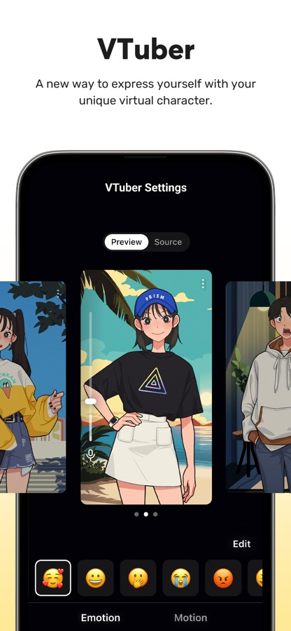 Begin your VTubing journey with just your smartphone! Use custom avatars or the 2D and 3D VRM avatars provided by the PRISM app.