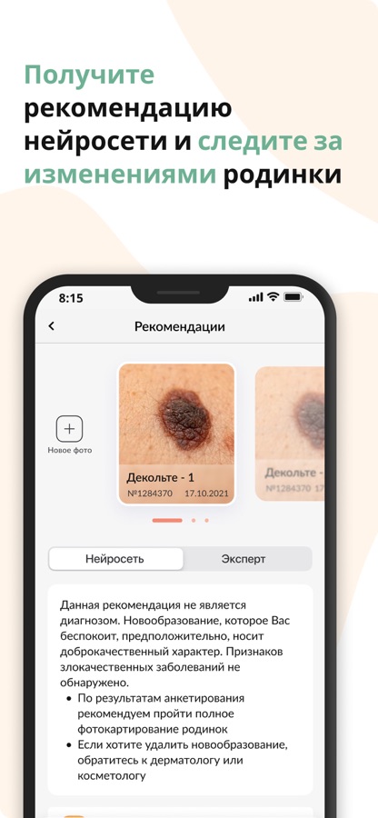 Вы не должны откладывать обращение за медицинской помощью, прекратить лечение или игнорировать медицинскую консультацию из-за информации, содержащейся в приложении «Про родинки».