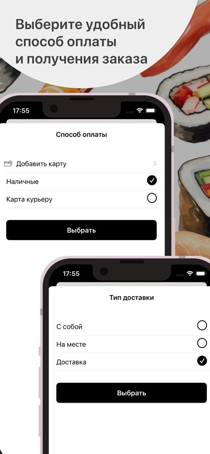 Укажите время, когда хотите прийти за своим заказом или выберите доставку с указанием времени и адреса доставки.