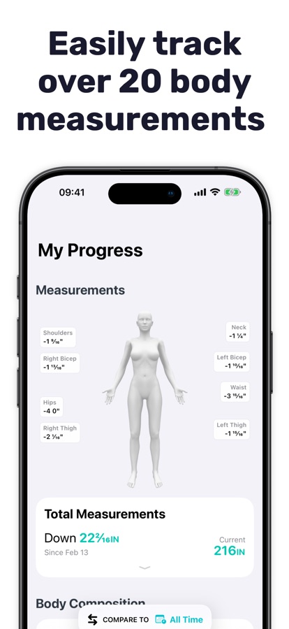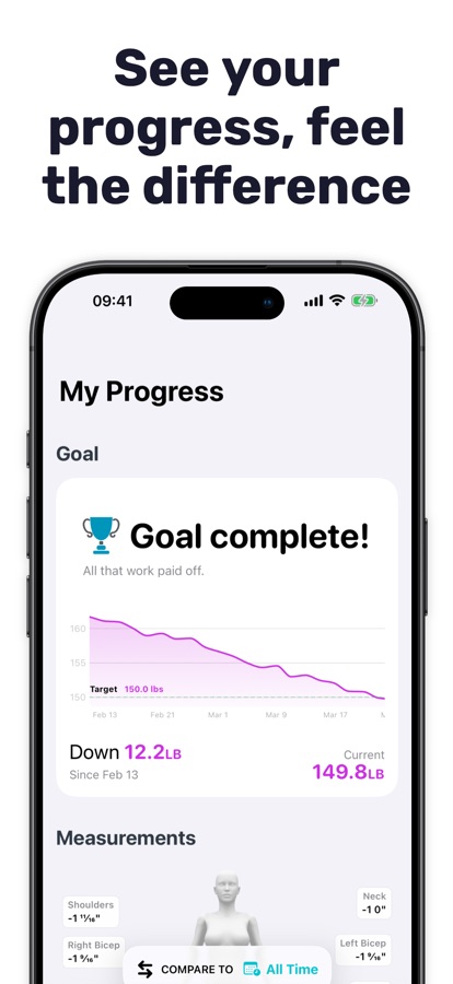 Легко отслеживайте цели по снижению веса, измерения тела, диеты и ИМТ с Progress.