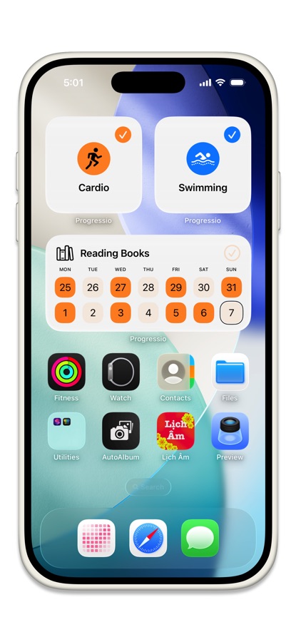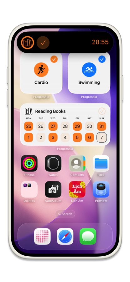 Отслеживайте и завершайте привычки с главного экрана. Виджет Центра Управления (iOS 18+).