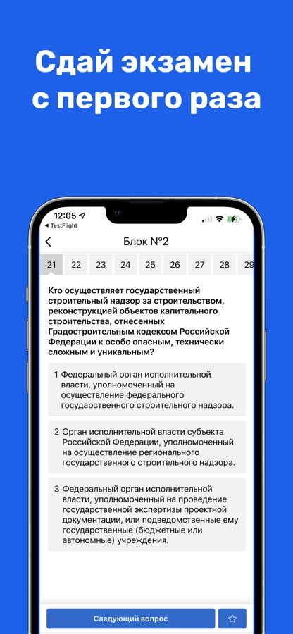 — Режим «Экзамен» 20 вопросов максимум 2 ошибки