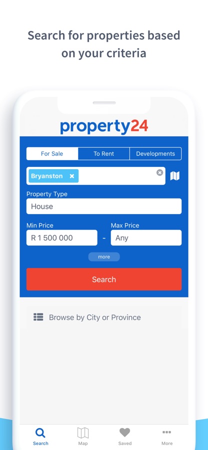 Download the FREE Property24.com app and find your perfect home. Get South Africa’s leading Estate Agencies’ properties for sale or rent on your iPhone or iPad. The intuitive interface makes searching for property quick, easy and fun with full-screen house photographs and location-based searching to find property near your current location.