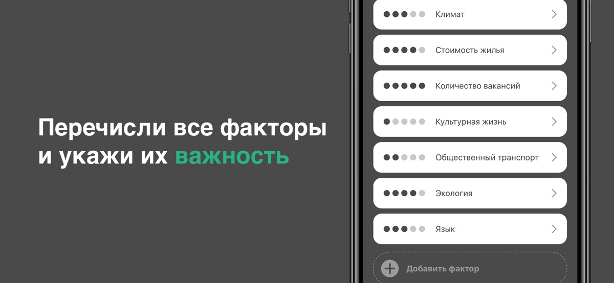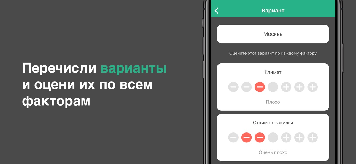 Перечисли все факторы, которые влияют на решение и укажи их важность. Перечисли все возможные варианты и оцени их по каждому фактору.
