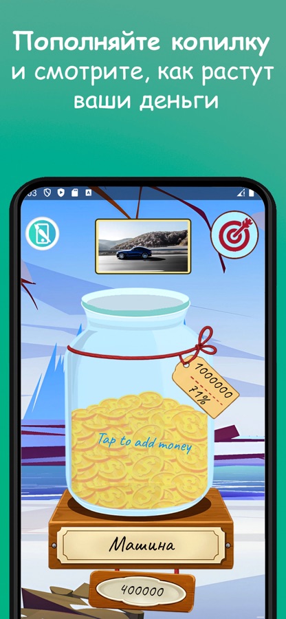 Простота использования и наглядность — одни из основных преимуществ приложение. Пополнять копилку, создавать цели и просматривать их можно в одно касание. Контролируйте свои финансы. Вы удивитесь, как быстро можно накопить на поставленную цель, если всегда помнить о ней и видеть прогресс накопленных денег.