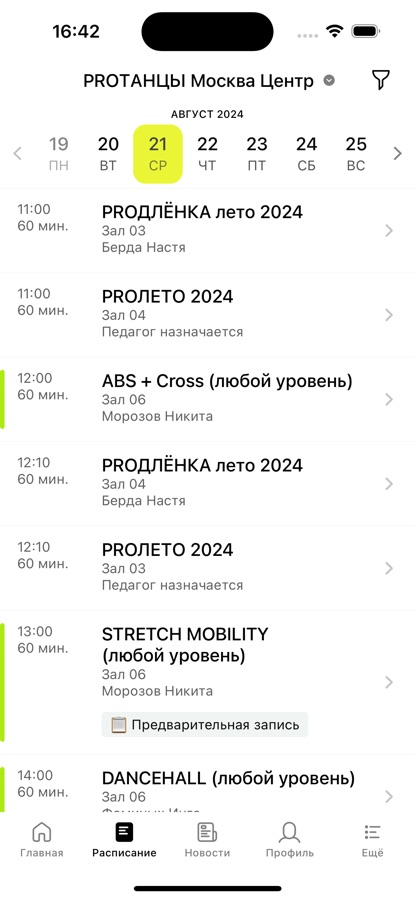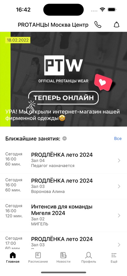 Приложение предназначено для клиентов танцевального центра PROТАНЦЫ.