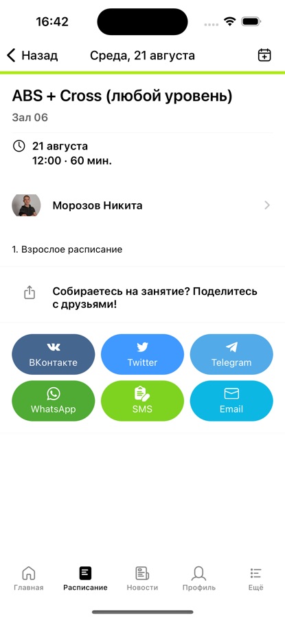 — получать оповещения о предстоящих занятиях и обо всех изменениях расписания центра;