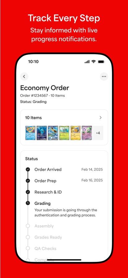Real-Time Updates: Stay informed with order progress notifications as your collect cards move through the grading process.