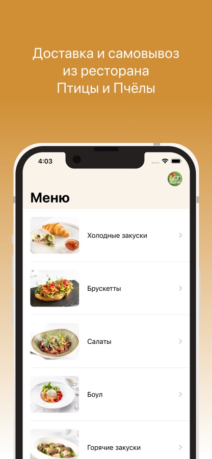Как сделать заказ в приложении “Птицы и Пчёлы”: выберите понравившиеся позиции из меню, добавьте их в корзину и перейдите на экран оформления заказа (по нажатию на иконку корзины).