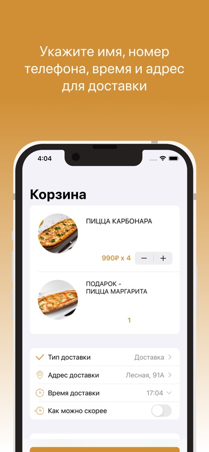 Укажите время, когда хотите прийти за своим заказом или выберите доставку с указанием времени и адреса доставки.