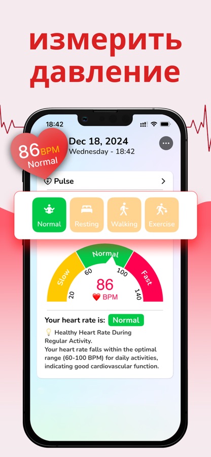 — Мониторинг везде и всегда: Измеряйте пульс с помощью телефона, где бы вы ни были.